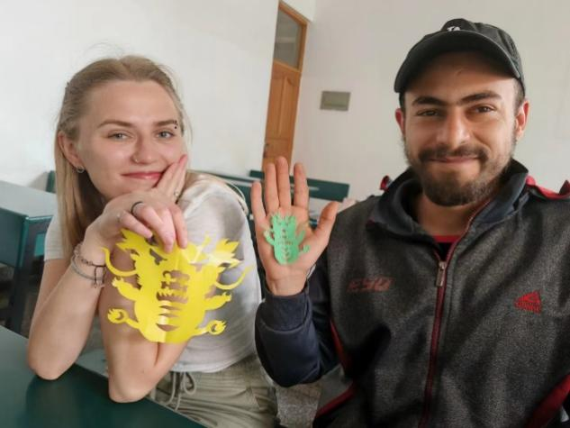 中国画,简称“国画”,是我国的传统绘画形式,用毛笔蘸水、墨、彩在绢或纸上作画,题材广泛,包括人物、山水、花鸟等,在国际学生中具有独特的艺术魅力。学子寥寥数笔,勾勒出合和之美,令人赞叹。