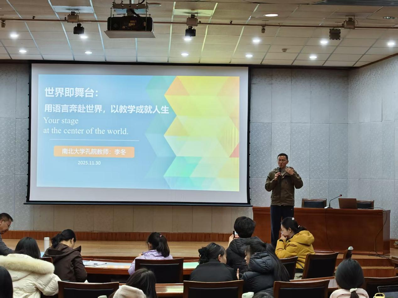 现任教于孟加拉南北大学孔子学院的李冬老师,以学长身份分享了海外教学经验。他结合海外教学真实场景,讲述从汉语志愿者到海外全职教师的进阶历程,分享资质备考、实践积累、人脉搭建等实用技巧。他提到,国际中文教师志愿者和公派教师岗位,是兼顾职业发展与个人理想、拓宽人生视野的优质选择,特别看重专业知识、教学技能、中华才艺与跨文化沟通能力,鼓励学弟学妹把握国际交流机会,在实践中成长。