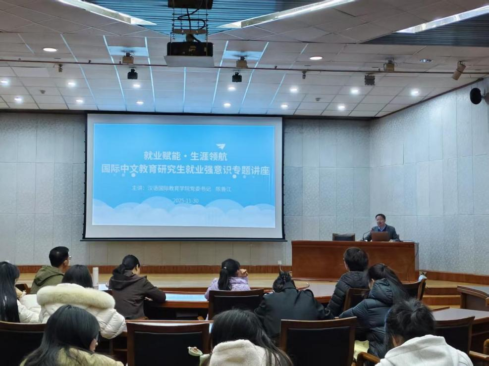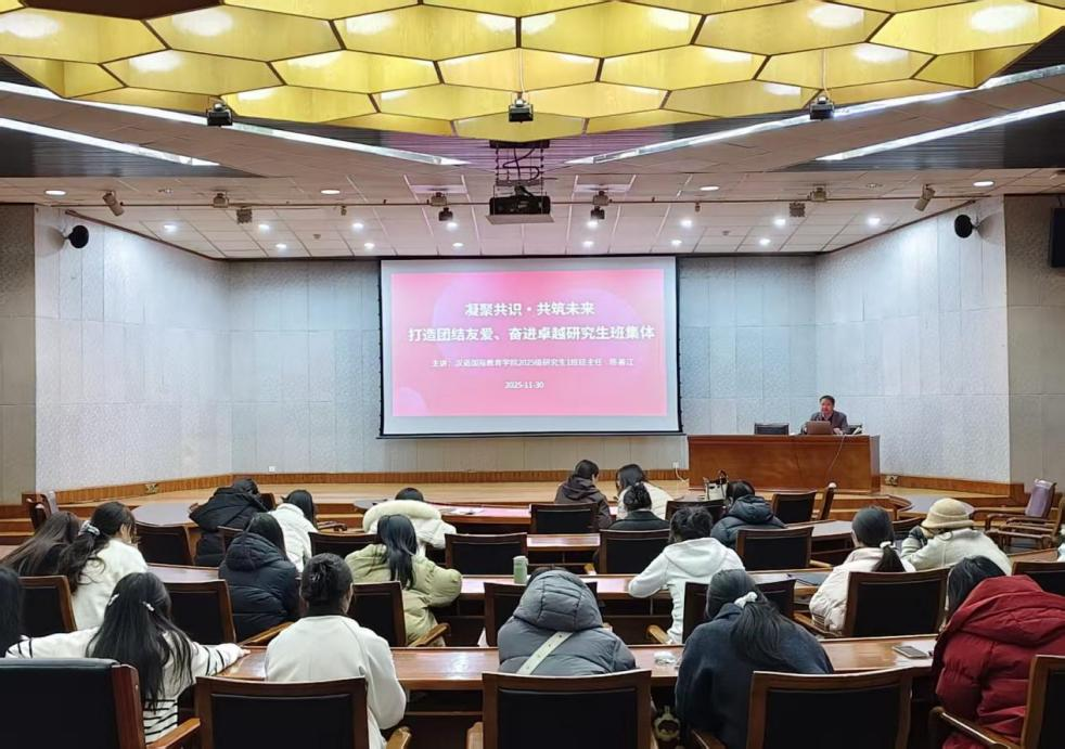 2025 年 11 月 30 日晚,云南大学汉语国际教育学院 “力行”讲堂系列活动在科学馆二楼顺利举办。本次活动创新整合“全会精神学习、就业导航、年级主题会议与班级联合建设”三大主题,将理论学习、生涯规划与集体建设相结合,为全体 2025 级硕士研究生、在校研二学生及学院辅导员、班主任带来务实有效的成长指导。活动由学院党委书记陈善江主持,旨在强化学生政治理论素养、自我规划能力与班集体凝聚力,引导青年学子在国际中文教育赛道锚定目标、逐梦前行。