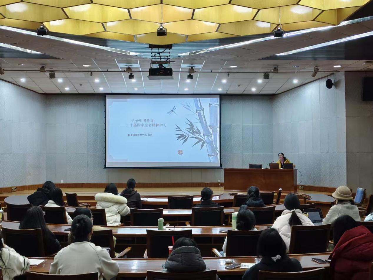 学院副院长陈芳围绕党的二十届四中全会“教育强国”“人才强国”“文化传承发展”核心要义,结合国际中文教育学科特色,为学子解读青年一代的责任担当。她指出,国际中文教育是文明互鉴的重要纽带,更是讲好中国故事、塑造可信可爱可敬中国形象的关键载体。学院将持续深化中华优秀传统文化教育,推动课程融合与数字创新,提升中文教育的文化传播力与国际影响力,呼吁学子以专业所长搭建中外沟通桥梁,在国际舞台传递中国声音。