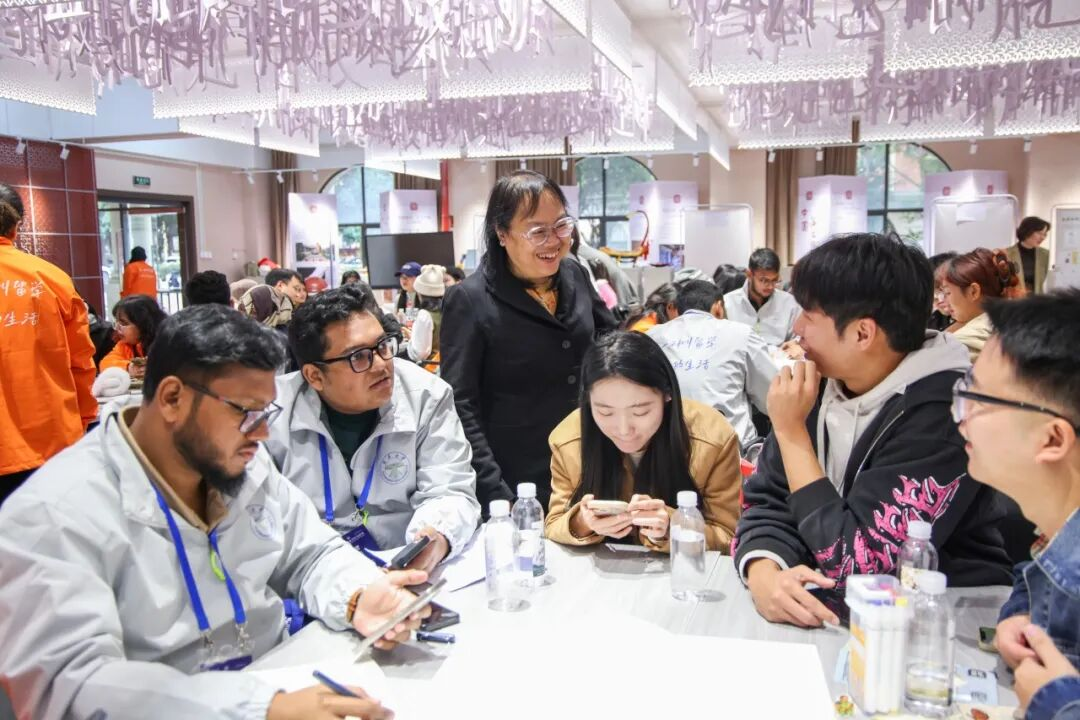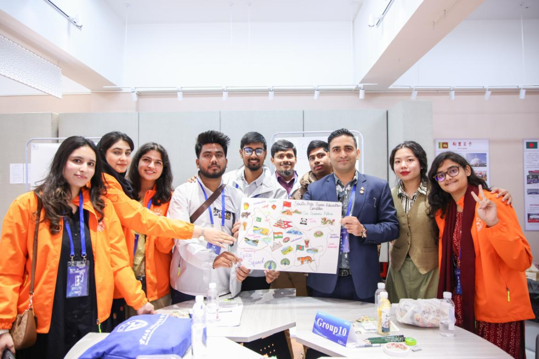 对话会设置“智汇沙龙”与“互鉴共生”两大模块。“智汇沙龙”环节,中外青年通过“多语言问候挑战”“家乡名片60秒”等活动迅速破冰,组成十个小组,围绕丝路学堂、语言之桥、绿色教育走廊等议题合作绘制创意海报,以视觉化形式勾勒中国-南亚教育合作新路径。