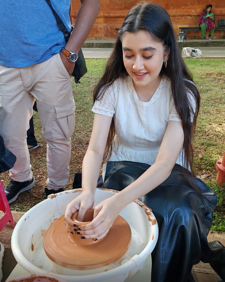 10月31日的建水紫陶非遗体验让营员们收获满满。在紫陶博物馆,营员们参观宋代残片、明清茶具,观看非遗传承人现场演示“刻坯填泥”“无釉磨光”工艺,了解紫陶与宜兴紫砂“透气不透水”的差异。随后,营员们在专业老师指导下体验紫陶拉坯,每人制作一件小型作品带走留念。