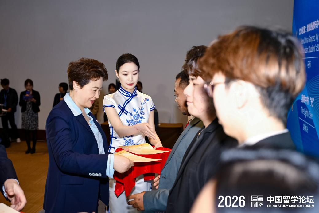 图2:教育部国际合作与交流司二级巡视员席茹为马伟博士颁奖