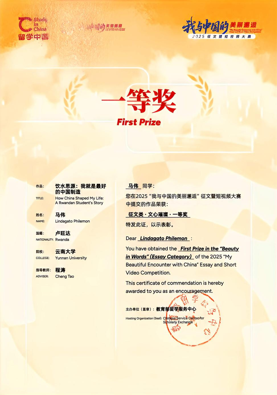 相关链接:中华人民共和国驻卢旺达共和国大使馆微信公众号《热烈祝贺卢旺达孔院校友征文折桂》https://mp.weixin.qq.com/s/mIFcV2R6Nbh_4rbLkTjSzA